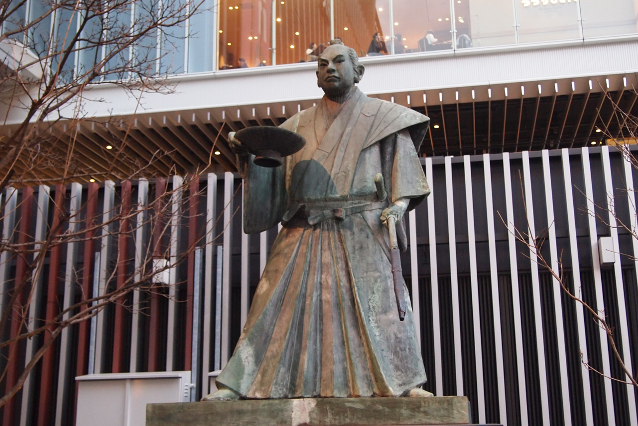 博多駅には、日本号の持ち主、母里友信さんの銅像があります。