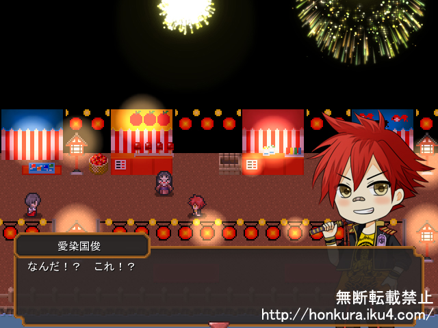 何でこんなに時間がかかったのかというと、祭りの屋台へのセリフを47振り分用意してたからです。プレゼント自体は愛染くん用ですが、イベント後は、好きな近侍と一緒にお祭りに行けるように設定したら、芋づる方式に、せっかく祭に来てるのに、近侍が店へ何にも反応しないのが寂しいなぁ、となったのが理由です。
