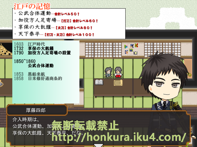 長曽祢さん居る状態であの話は蜂須賀が大惨事になるから条件をいれとこうと思い立って表示の方は出来てるのに、実際のプログラムの方は分岐忘れてるんだなぁ…。後でやろうって思って、そのまま忘れてやがるのが手に取るようにわかる。自分の記憶力…(こういうのが割と良くある)